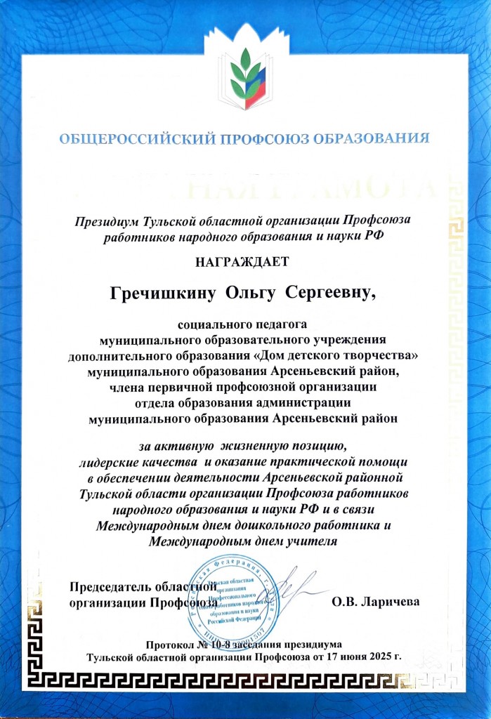 Курсы повышения квалификации ГОУДПО ТО «ИПК и ППРО ТО» по теме «Деятельность социального педагога в современном образовательном пространстве», 144 часа, 2024г.